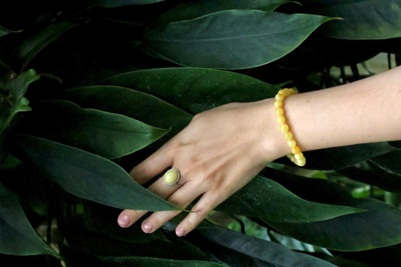 • Amber Ring with Ball - Honey Amber & 925 Sterling Silver | Tetibel Amber Ring with Ball - Honey Amber & 925 Sterling Silver | Tetibel